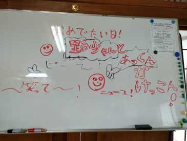 副住職 慈証と理紗の結婚披露をおこないました。多くの皆様がお参りに来られ、お祝いの品やお言葉をいただきありがとうございました。長男と孫も東京からお祝いに来て、賑やかな法要となりました。孫が白板にお祝いのメセージを書いてくれました。