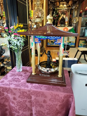 4月8日の花祭り・お釈迦様の像に甘茶をかけました。