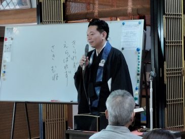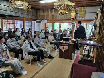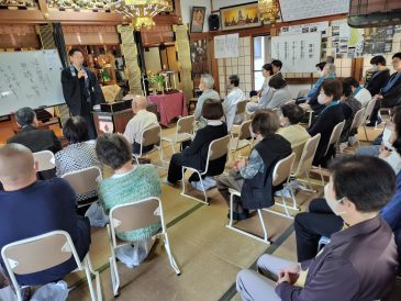 「お浄土に生まれさせていただく。仏の智慧をいただいている。阿弥陀と同じ悟りの仏となる。自分の命が仏となる喜び。私の命は仏の華となって開いていく。自分の命をいかに終えていくのか。自分の命を見つめる機会が法要である。」と話されました。