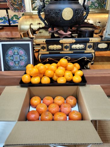 今回も高齢のTさんが運転され、季節の名産を届けていただきました。